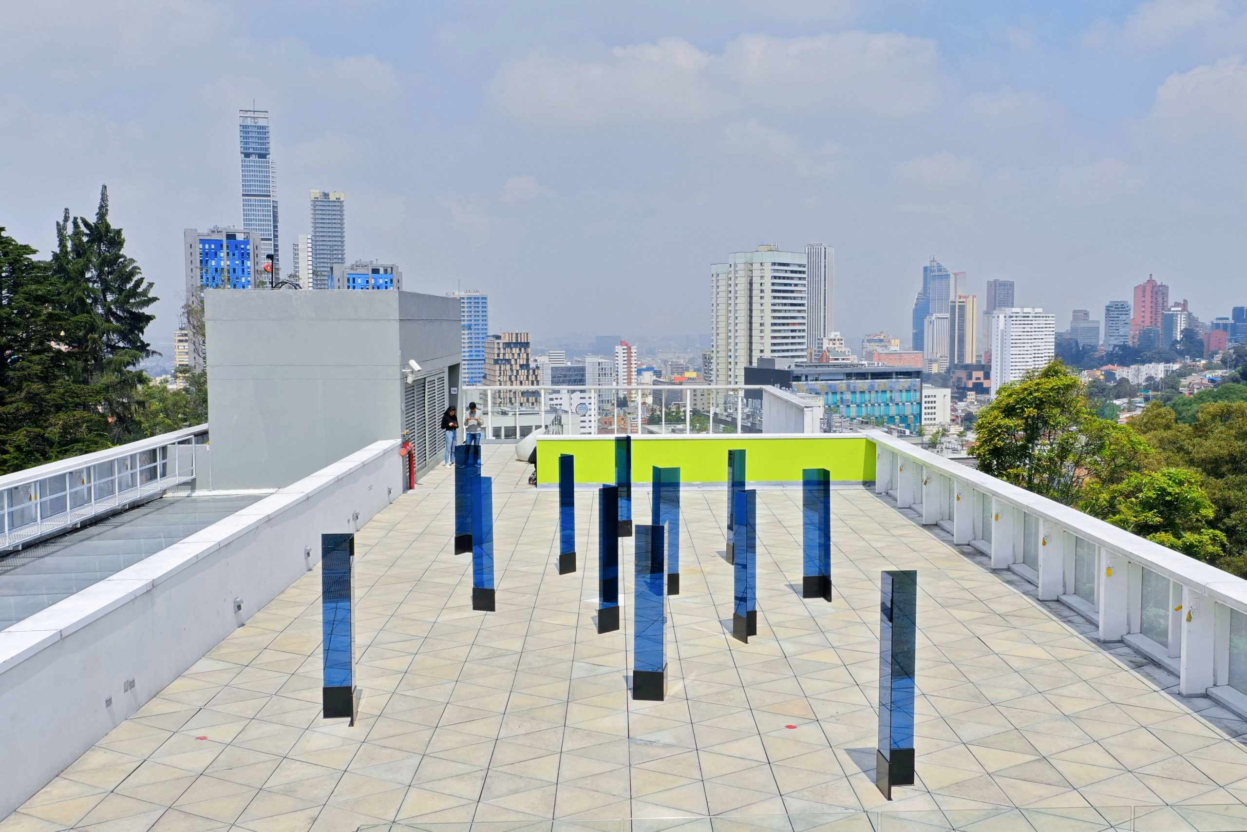 A cielo abierto is an installation in situ that proposes a formal dialogue between light as raw material and the space where it is combined. It is a project that sought to materialize natural light into sensory experiences of the open-air space while generating a reactivation of the terrace of the building where it was placed. Through the subtle games that the glass modules generated in the presence of sunlight, resulted multiple states of perception that depended exclusively on the moment in which the installation was attended, since factors such as time or atmospheric conditions caused the environment to be perceived different.