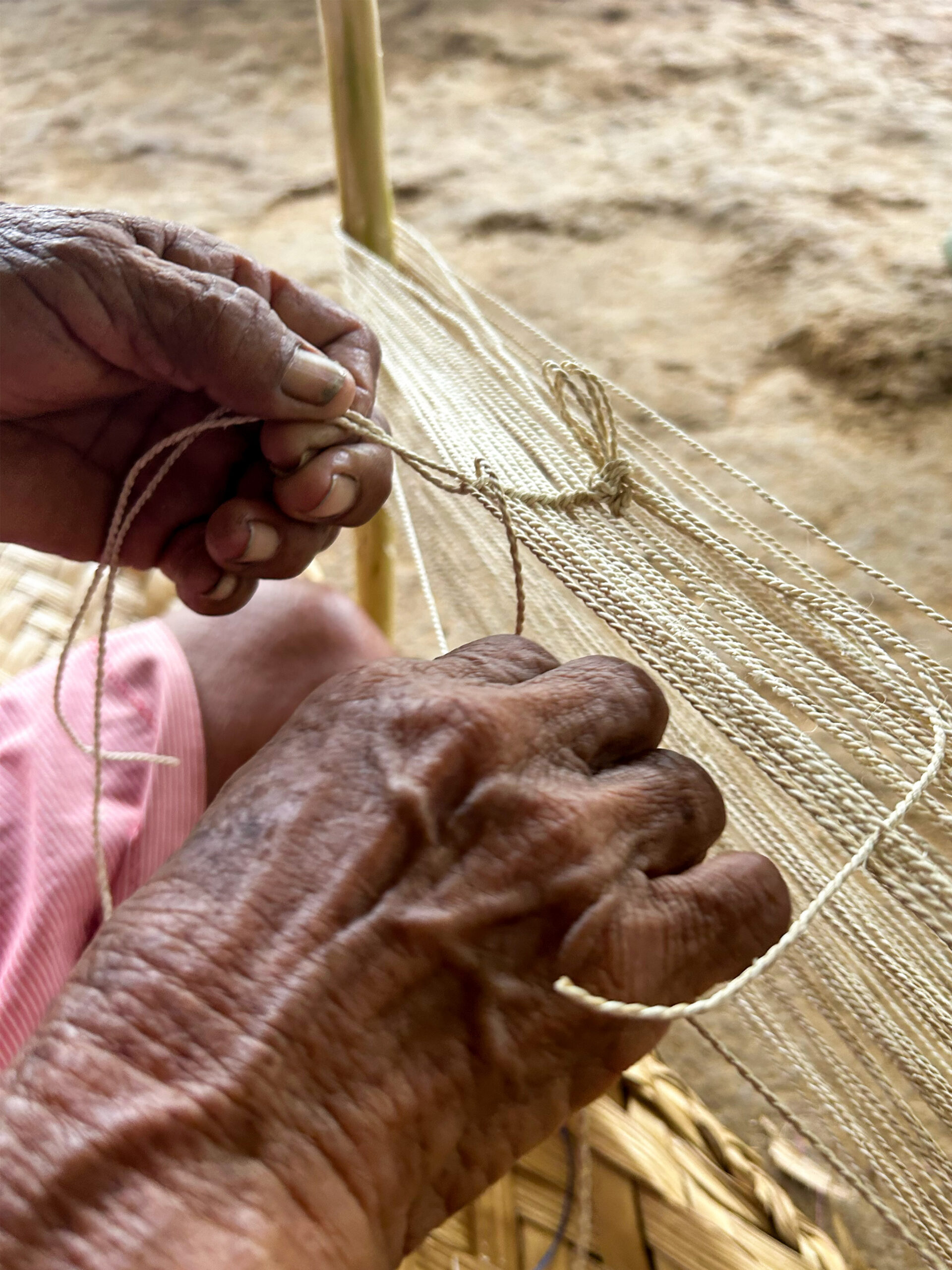 El chinchorro es un cuerpo vivo que se amolda a otro cuerpo, una segunda piel que protege y resguarda. Aquí, uno de los 2 chinchorros que realizamos con el tejido ‘de ochos’.