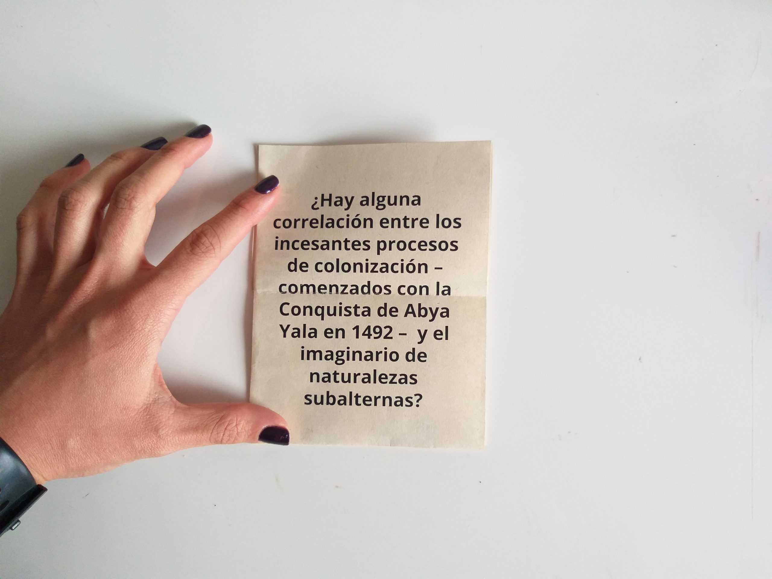 Desde la introducción, imposición y modificación de especies agrícolas – el alimento –, hasta el uso de árboles foráneos para la transformación de espacios naturales, creación de zonas verdes, reforestación y “renaturalización” de parques, cerros y calles, la naturaleza ha sido un arma constante de colonización. La naturaleza, que se piensa como antagónica a la sociedad, a lo civilizatorio y a lo político, se ha instrumentalizado como un potente agente que configura y reafirma estructuras de dominación, sometimiento y explotación de territorios y poblaciones. Una dinámica interiorizada e imperceptible que tiene sus raíces propiamente en la conquista y posterior colonización de Abya Yala desde 1492.