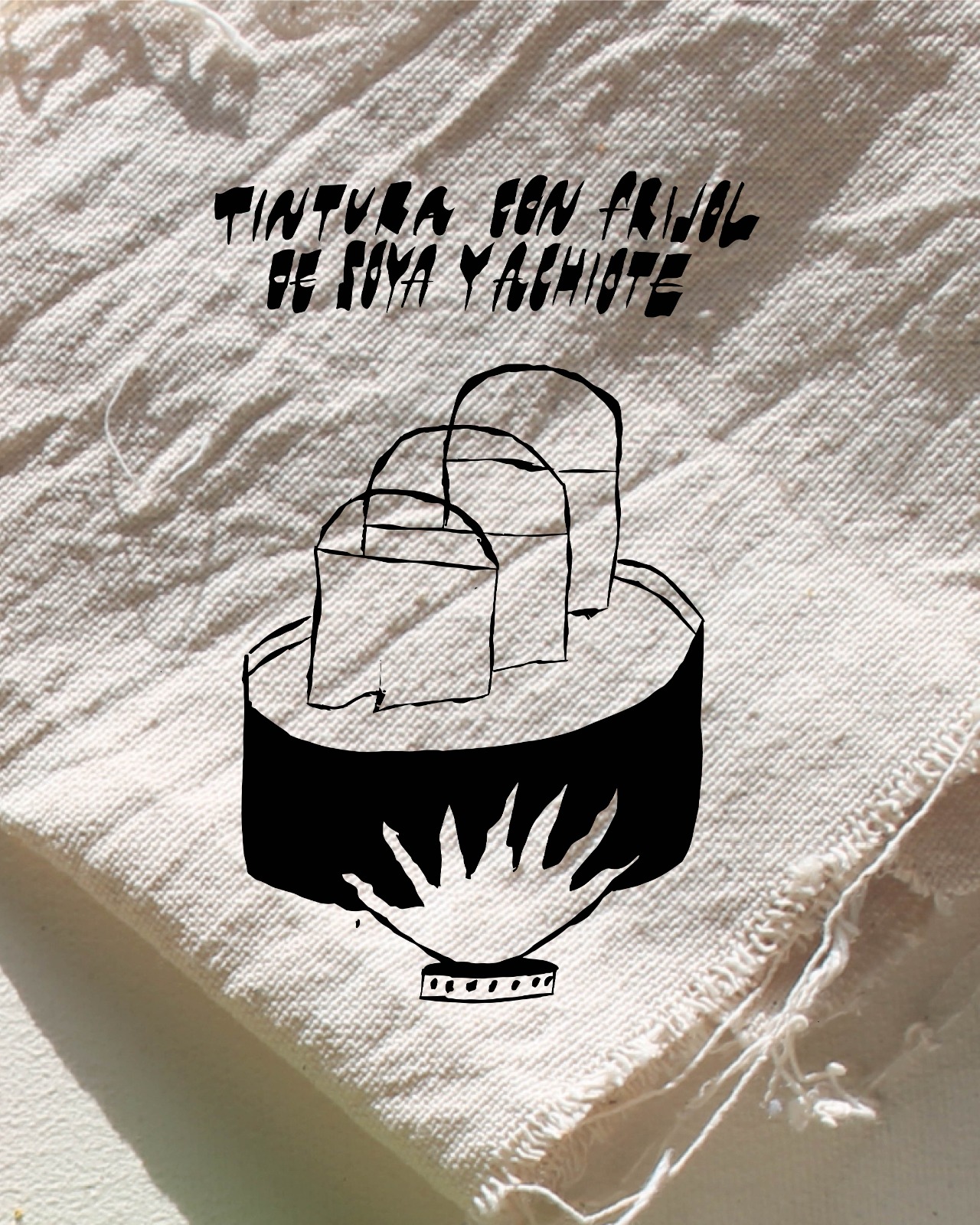 Dibujaremos trazos con leche de frijol de soya y su proteína permeará las fibras del algodón, que luego al estar sumergidas en el achiote en cocción, se teñirán más vivamente que el resto de las fibras y como en una fotografía se revelarán nuestras memorias en achiote. Con el tiempo estas memorias y la intensidad de su color también se transformarán. Este retazo que cada una llevará a casa será una memoria viva impregnada de achiote como guía.”