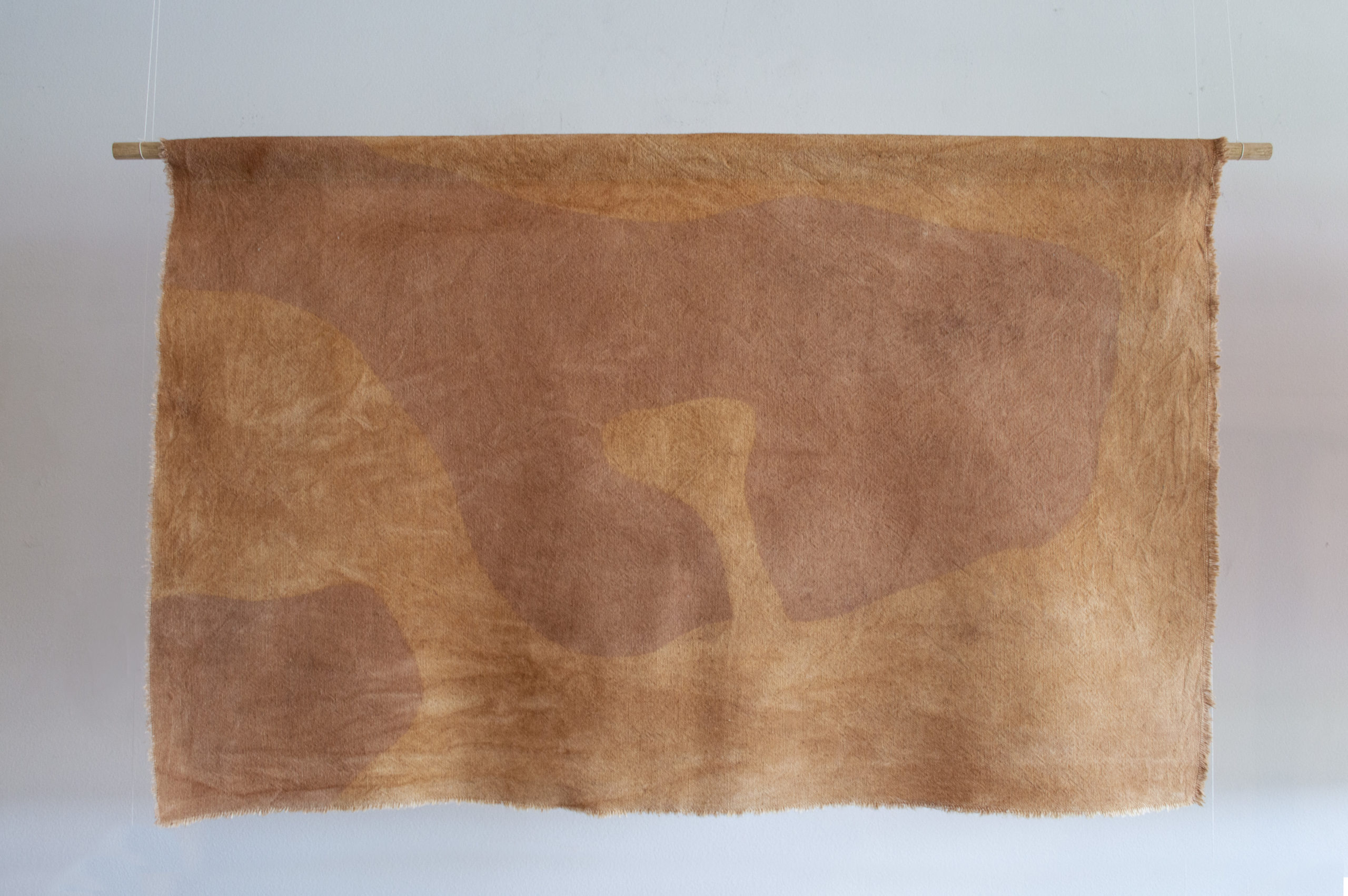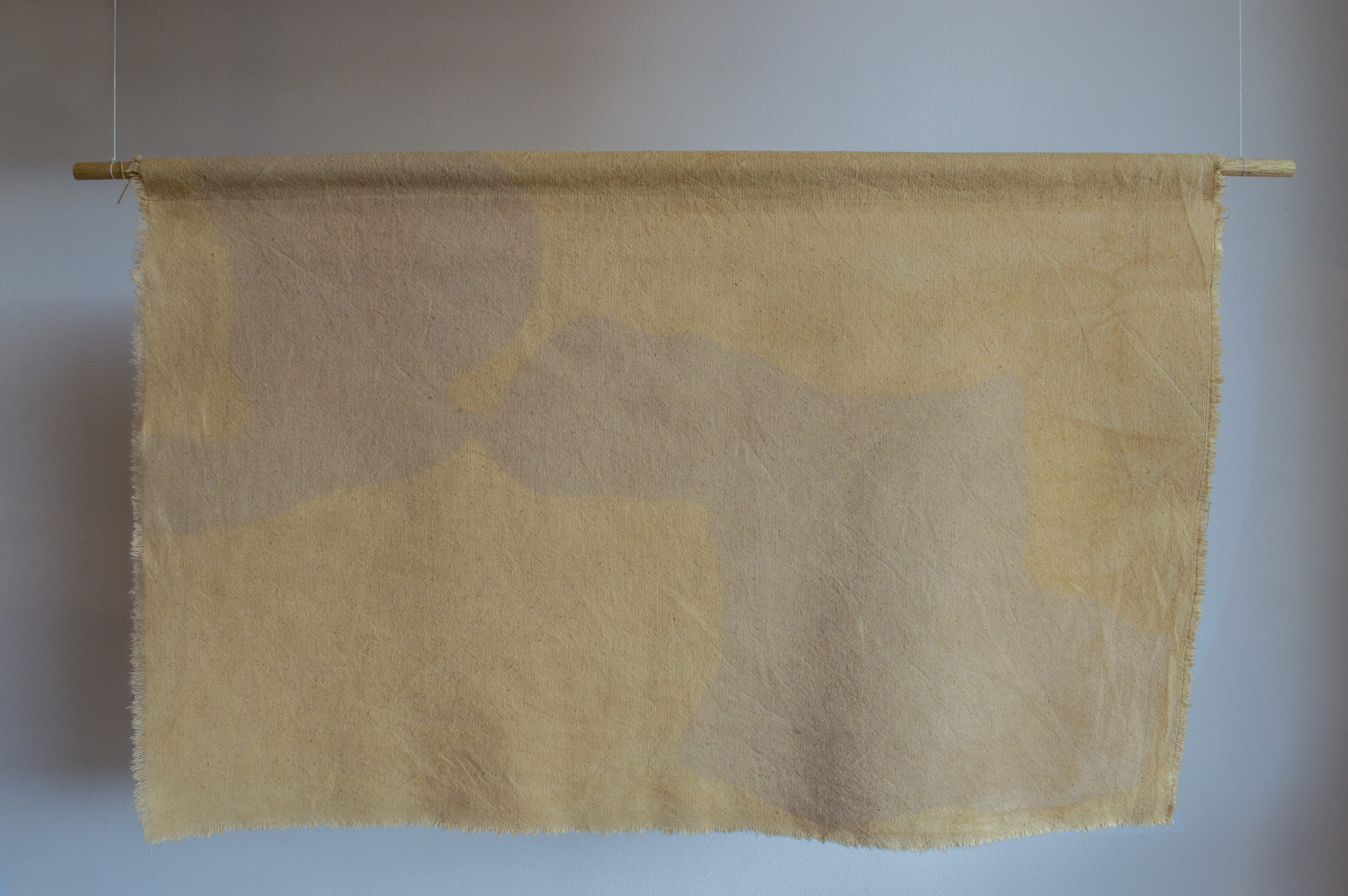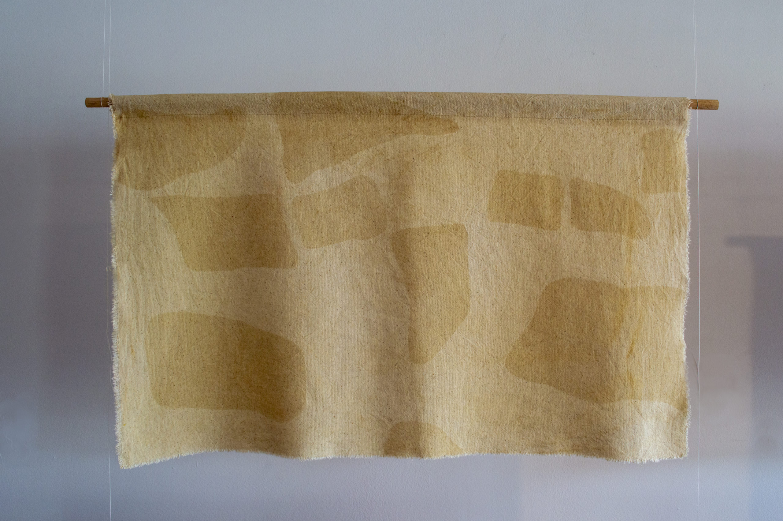 Territorial Whitewashing is a series of 6 hand-dyed fabrics with barks, fruits and roots of non-native trees that then go through a natural selective bleaching process which results in 6 deforested areas in the Colombian Amazon. These are 6 records taken by the FCDS and Amazon Conservation during the last year that show the colonization and whitewashing processes that are taking place in this region with very precise interests in radically transform the territory.